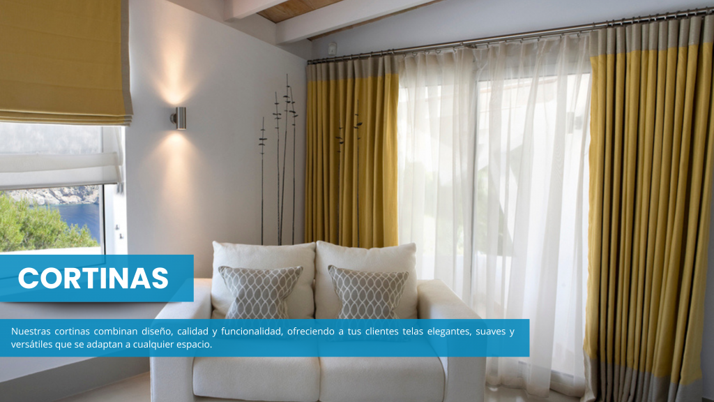 En Blinds House ofrecemos una selección exclusiva de cortinas traslúcidas y black out, diseñadas para combinar estilo y funcionalidad en cualquier proyecto. Cada detalle importa: desde la elección del tejido y color, hasta los accesorios y acabados, garantizando una instalación impecable y la máxima satisfacción del cliente final.