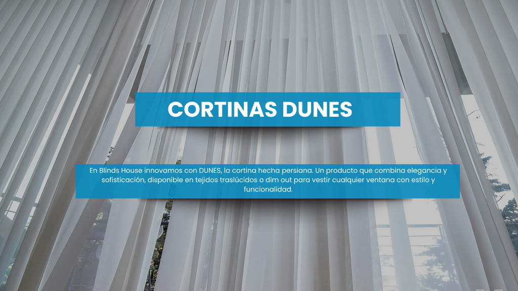 Cortinas DUNES es una línea exclusiva, pensada para ofrecer a tus clientes calidez y elegancia en cada proyecto. Con una variedad de colores y texturas, siempre habrá una opción adecuada para cualquier espacio.
